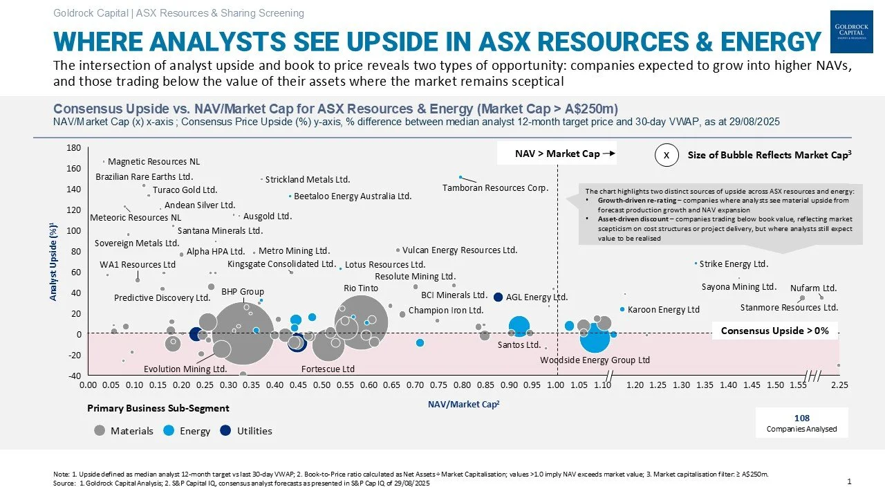 Chart 1: Where Analysts See upside in ASX Resources & Energy